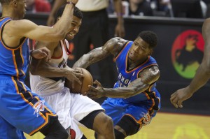 The conference finals and NBA Finals have given the Thunder a blueprint as to what they need for sustained success. In the Eastern Conference Finals, the Indiana Pacers showed what two competent big men can do against the Miami Heat. David West and Roy Hibbert gobbled up offensive rebounds and scored in the paint, almost at will. In the Finals, the San Antonio Spurs have shown that playing the same brand of basketball as the Heat (dribble penetration and 3-point shooting) can befuddle and frustrate them, especially if the opponent is hitting 3-pointers at a 45% clip.