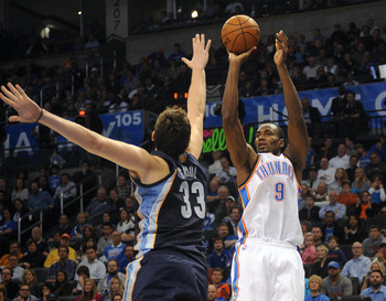 Other than the difference in assists per game, Harden and Martin have virtually the same offensive stats. Eventually, even the assists may be a wash, as Martin has shown a willingness to become more of a playmaker. People tend to forget that Martin has been the main offensive option on most of the teams that he’s played on and has been given the green light to shoot at will. But, with teammates like Durant, Westbrook, and Ibaka on the floor, Martin has shown that he can find the open man for an easy bucket or two.