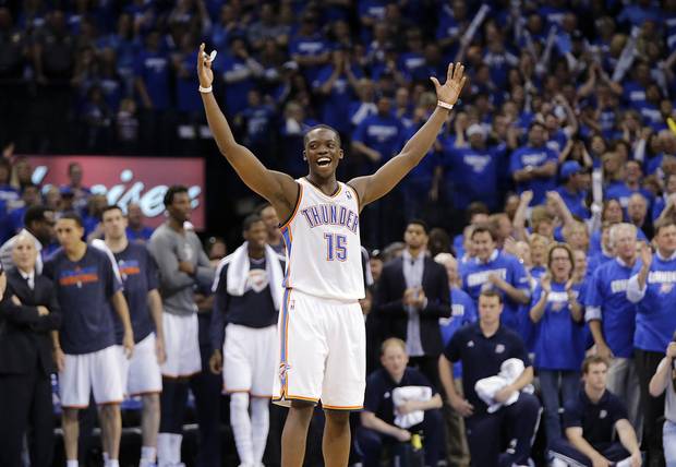 - Russell Westbrook vs. Patrick Beverly – When Oklahoma City fans look at Beverly, we see the franchise’s mortality in the balance, at least for this core group of players (Durant, Westbrook, Ibaka, Perkins, Sefolosha, Collison). Everything was going great for the first 5 seasons in OKC (steady progression, draft picks working out, player development, and, most importantly, health). But that all came crashing down on April 25, 2013, when Westbrook had to go under the knife for a meniscus tear suffered the night before. The tear, caused by Beverly’s reckless attempt at stealing the ball as Westbrook was calling for a routine ‘across the timeline’ timeout, caused the Thunder, who were considered to be title contenders, to flame out in the 2nd round of the playoffs.
